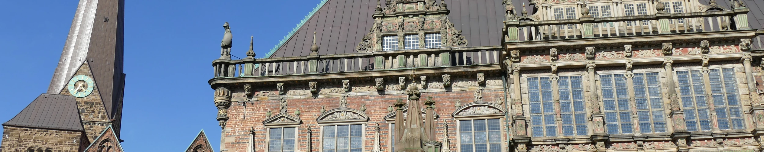 - Den historischen Marktplatz mit Roland-Statue und Bremer Rathaus (von außen)